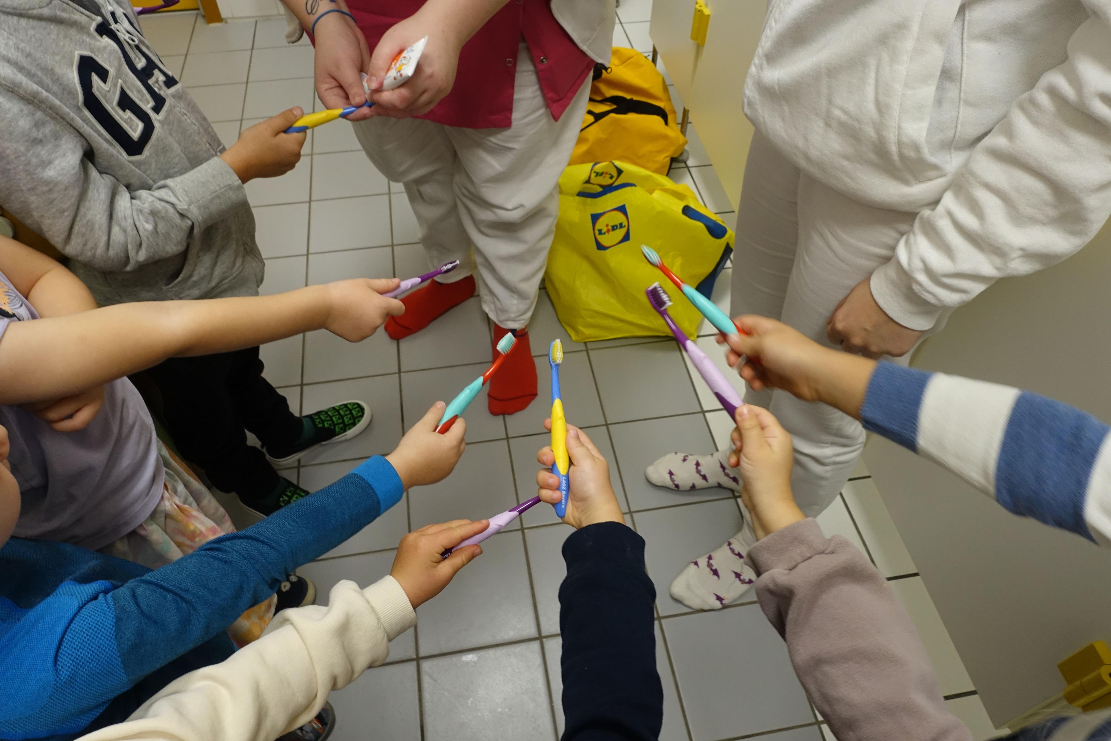 ab 9.00 Uhr: Brotzeit (gleitend) mit Buffet, Kleingruppenaktionen (zum Beispiel Sprachspiele für Migrationskinder und für baldige Schulkinder), Freispiel drinnen und draußen